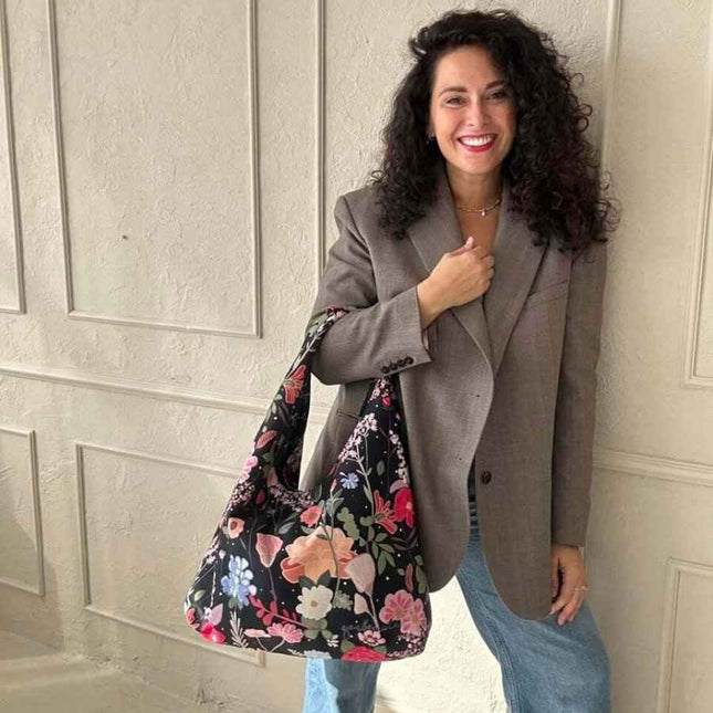 The collection includes favorites like the Moon handbag, Garbanota’s most popular design, featuring a capacious interior, signature patterned lining, and lightweight canvas-like fabric that is both comfortable and washable. Other designs, like the Hobo bag, are made from soft velour that feels like suede yet is easy to care for, with adjustable straps and practical compartments.