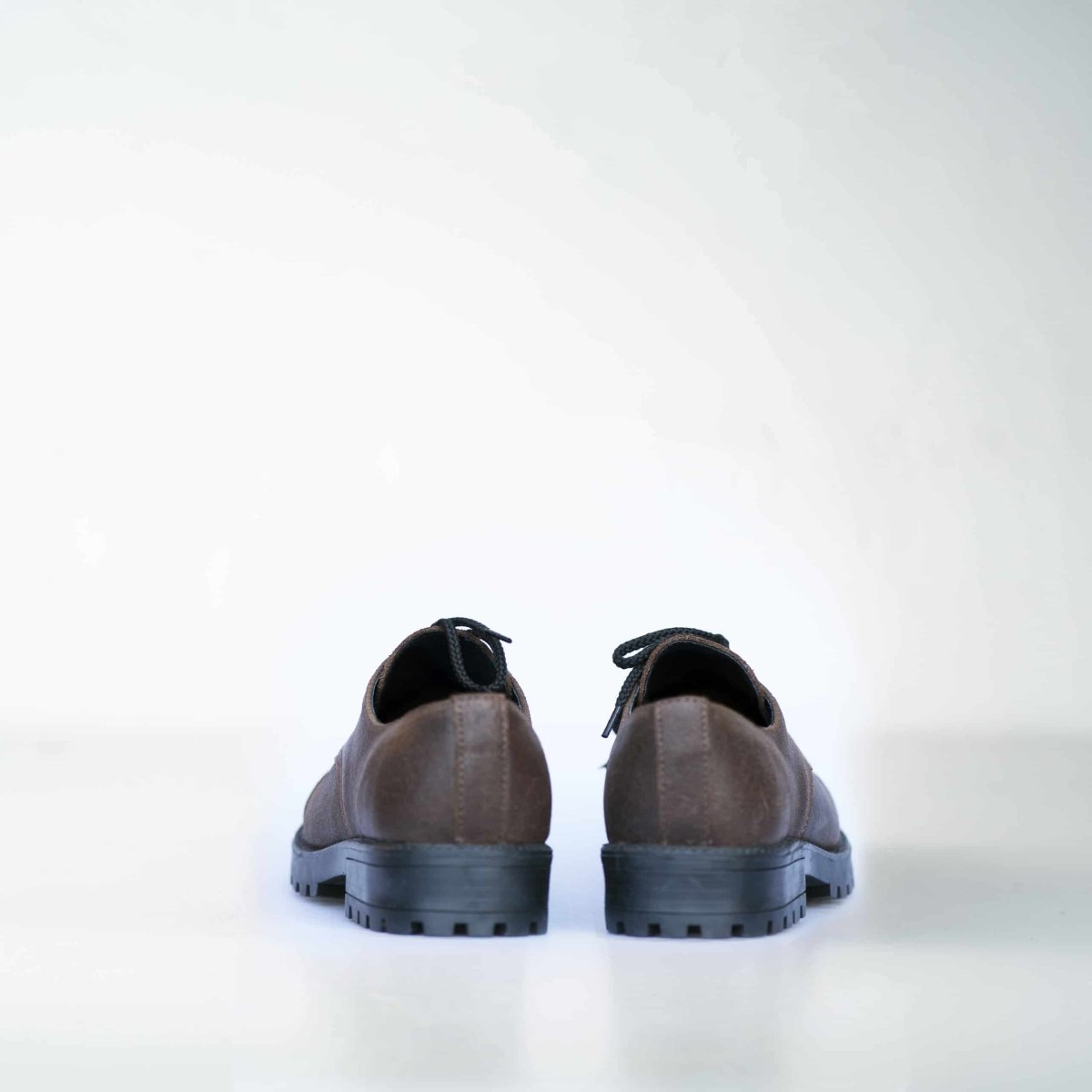 Dark Brown Widgets are unisex leather shoes that combine vintage tones with durable, military-grade construction. Handmade in Estonia by the same NATO-certified factory that makes M77 combat boots, these shoes balance rugged performance with minimalist design.