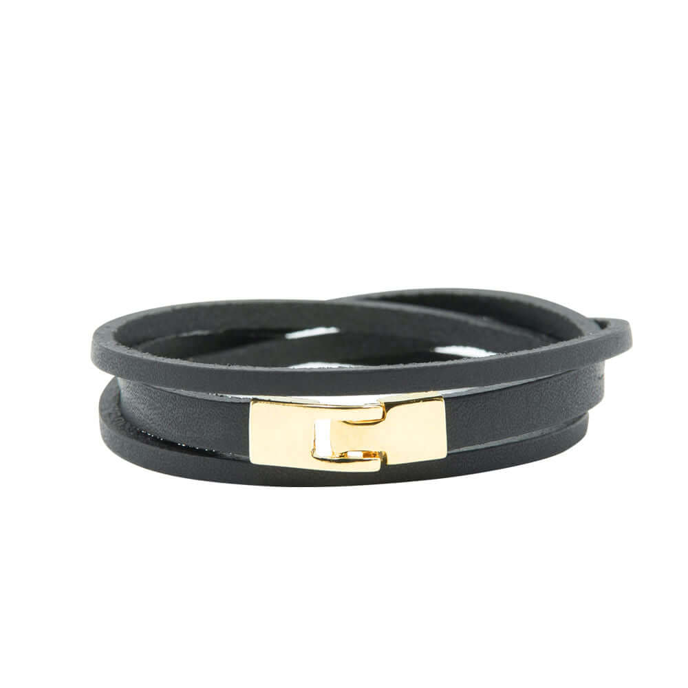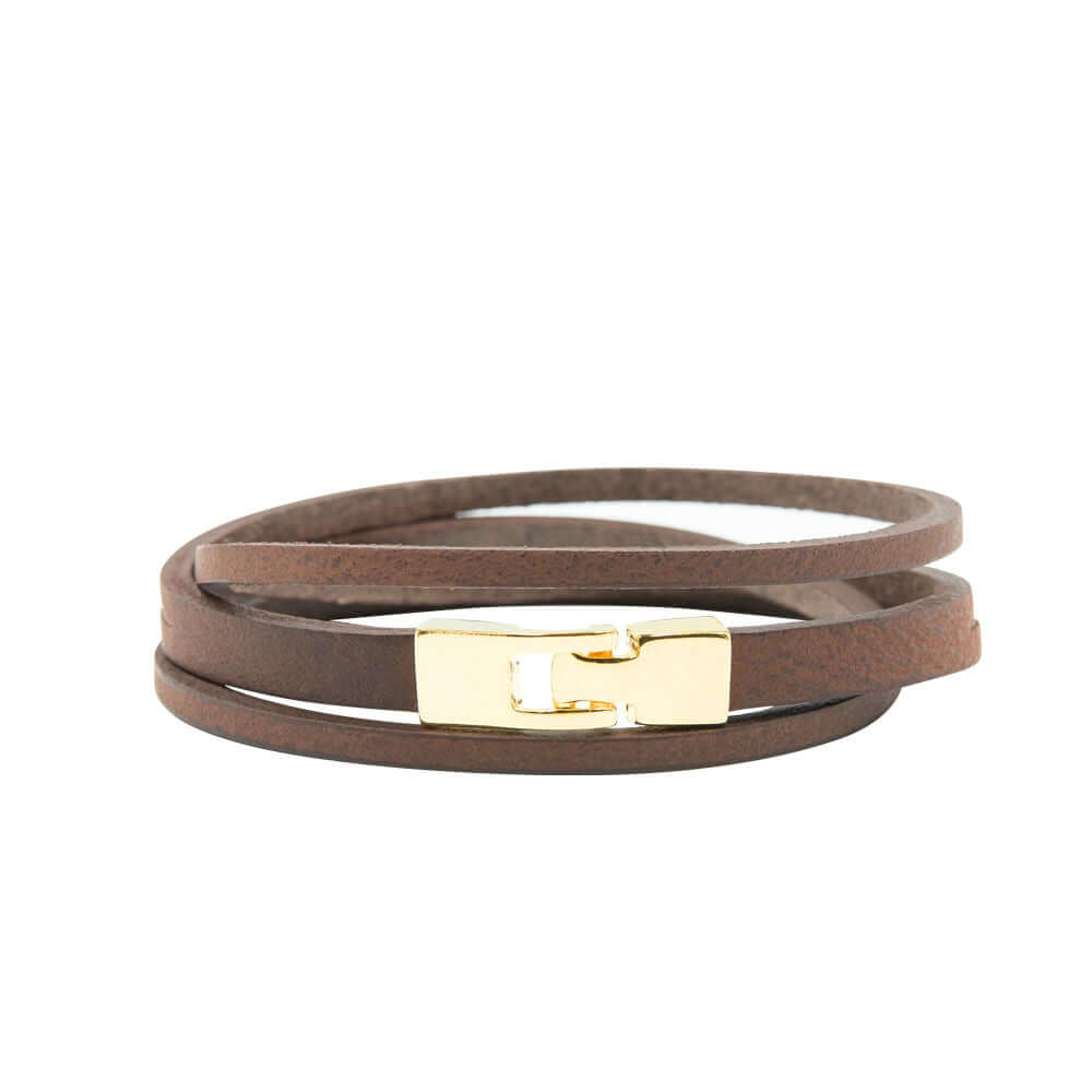 Double Wrap Slit Leather Bracelet – Gold T-Bar