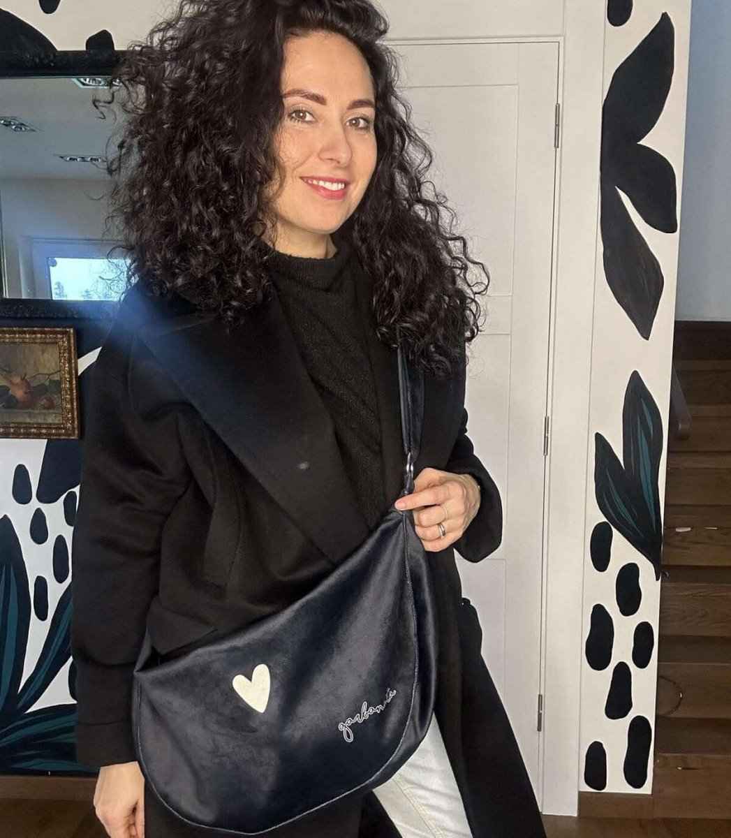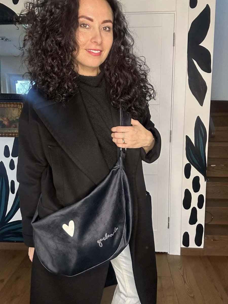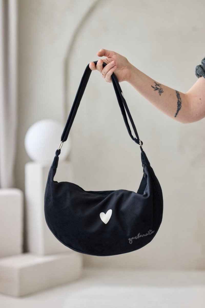 Garbanota – Velour Hobo Bag (Adjustable Strap, Machine Washable) Heart - Black