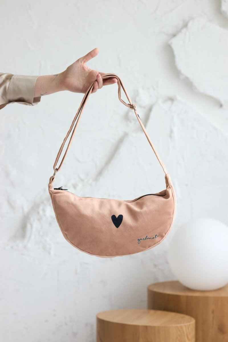 Garbanota – Velour Hobo Bag (Adjustable Strap, Machine Washable) Heart - Cream