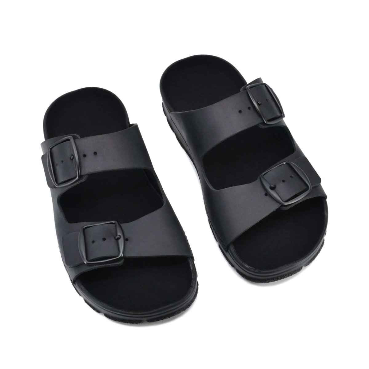 Featuring two fully adjustable metal buckles, these slip-on sandals offer a secure, customizable fit. The soft microfiber-lined insole provides light arch support, while the flexible, non-marking PU sole gives reliable grip across both indoor and outdoor surfaces.