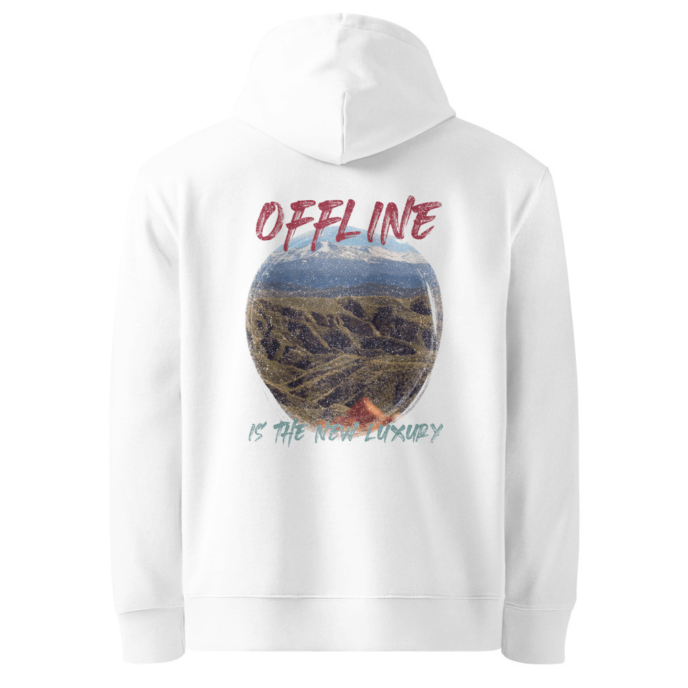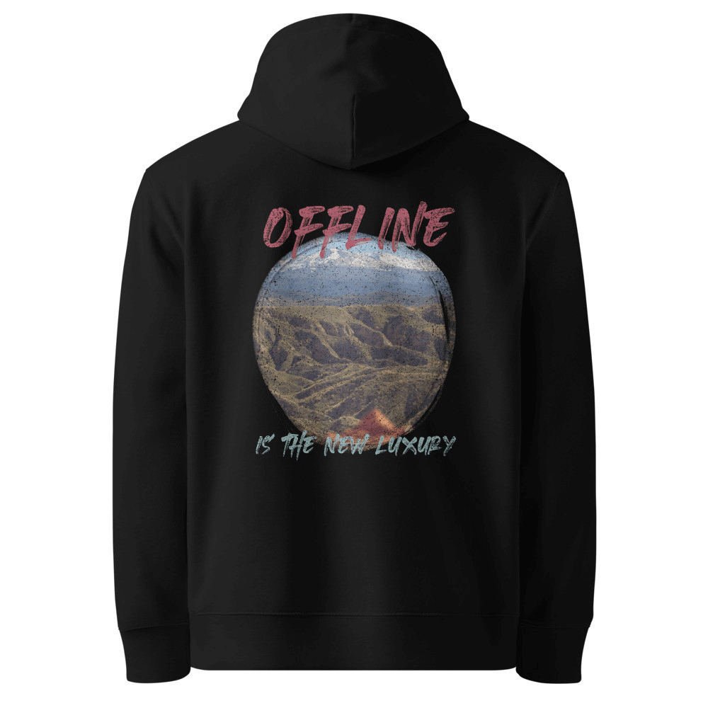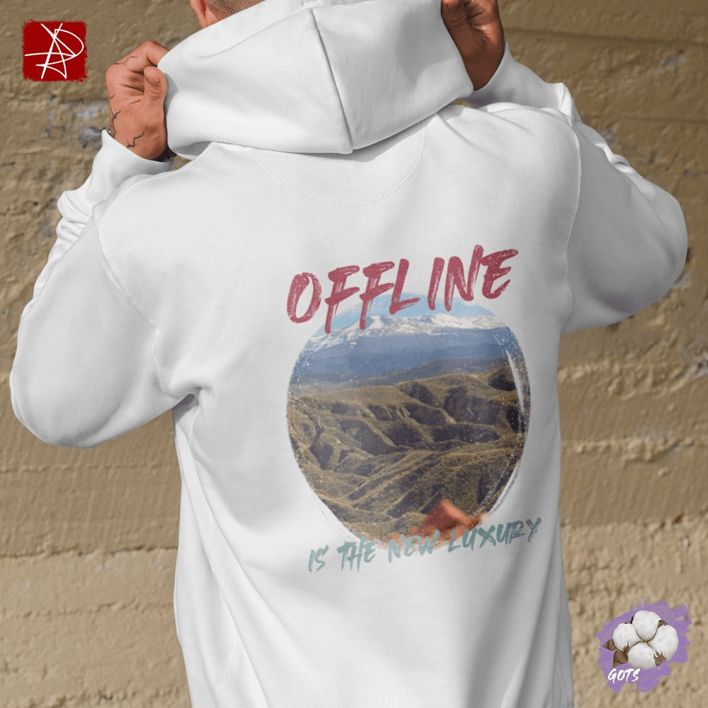 Embrace the luxury of disconnection and reconnect with nature in sustainable comfort with the "Offline Is the New Luxury" hoodie.