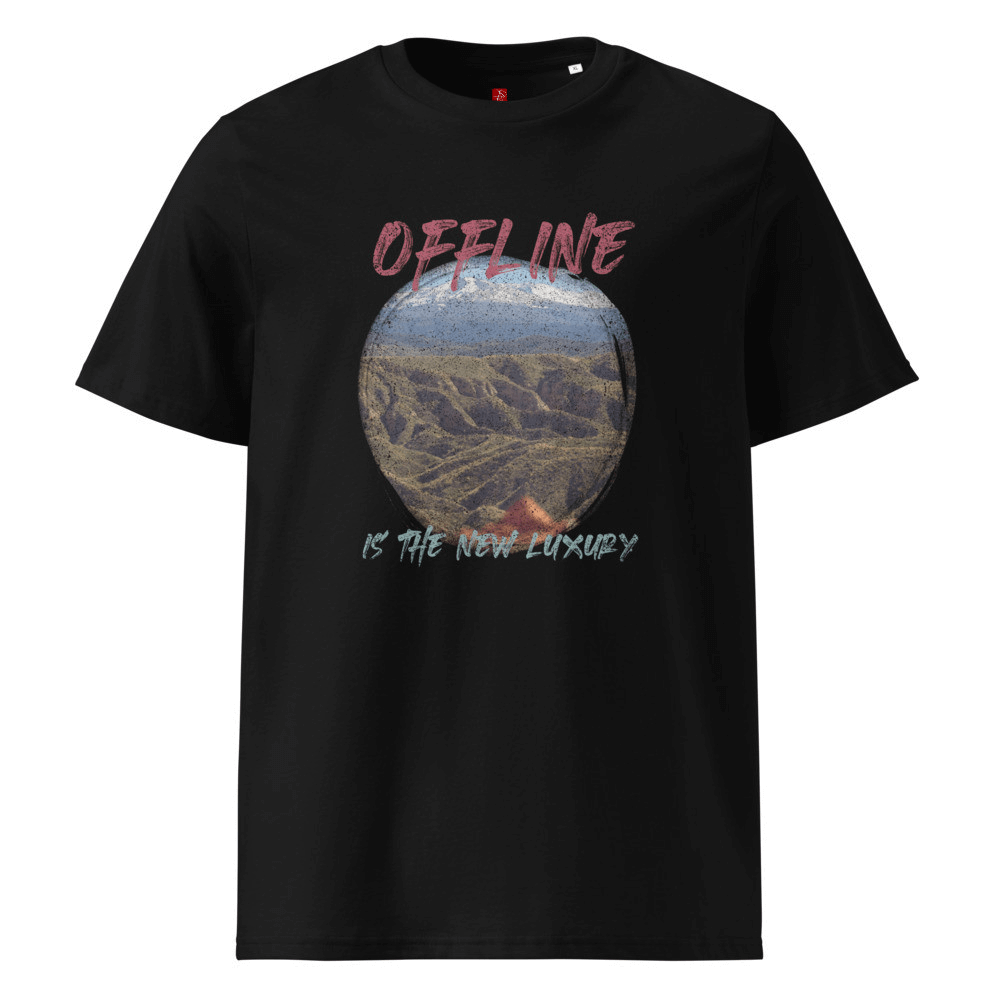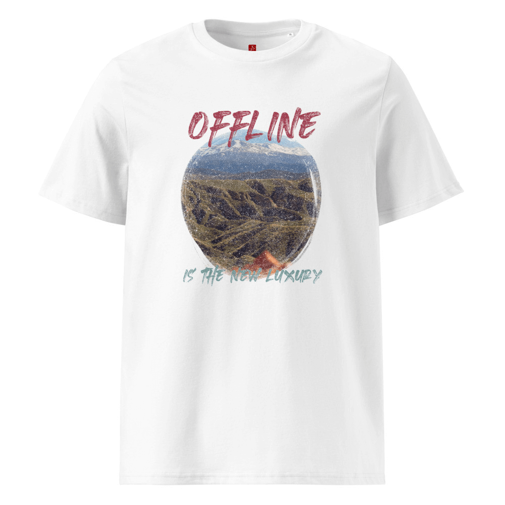 Embrace simplicity, mindfulness, and the beauty of nature with the “Offline Is the New Luxury” Organic Cotton Unisex T-Shirt. Designed for those who value slowing down in a fast-paced digital world, this tee features bold red and blue typography over a mountain and canyon landscape — a reminder to disconnect to reconnect.
